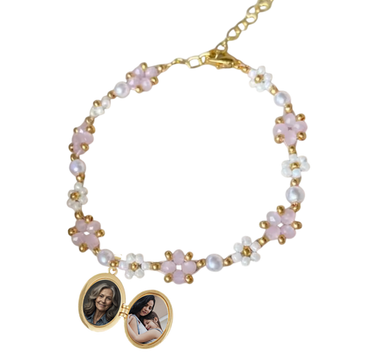 PULSERA de flores Relicario con INICIAL y tus fotos (DIJE PEQUEÑO)