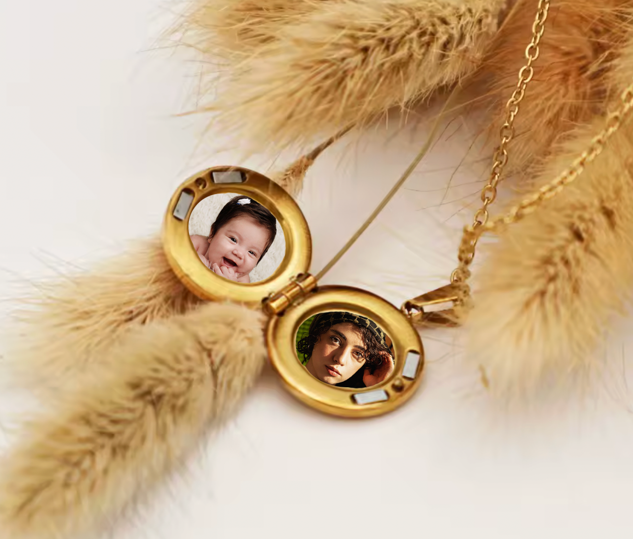 Relicario circular con zirconia en acero inoxidable con cadena